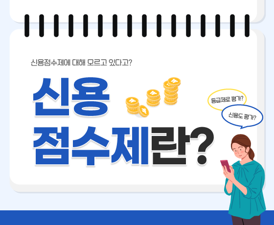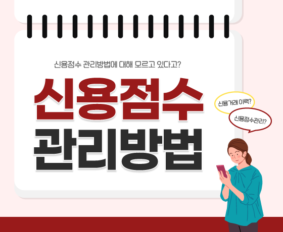 |신용점수 관리 방법 유의사항 신용 점수제란 개인의 신용 상태를 평가하는 신용조회 평가사(CB사)에서 1점~1,000점으로 산정하여 소비자 및 금융권에 제공하는 제도. 신용점수 관리 방법에 대한 정보 부족과 관리가 소홀한 탓에 신용 점수가 하락하고 대출 금리 인상 등 문…
